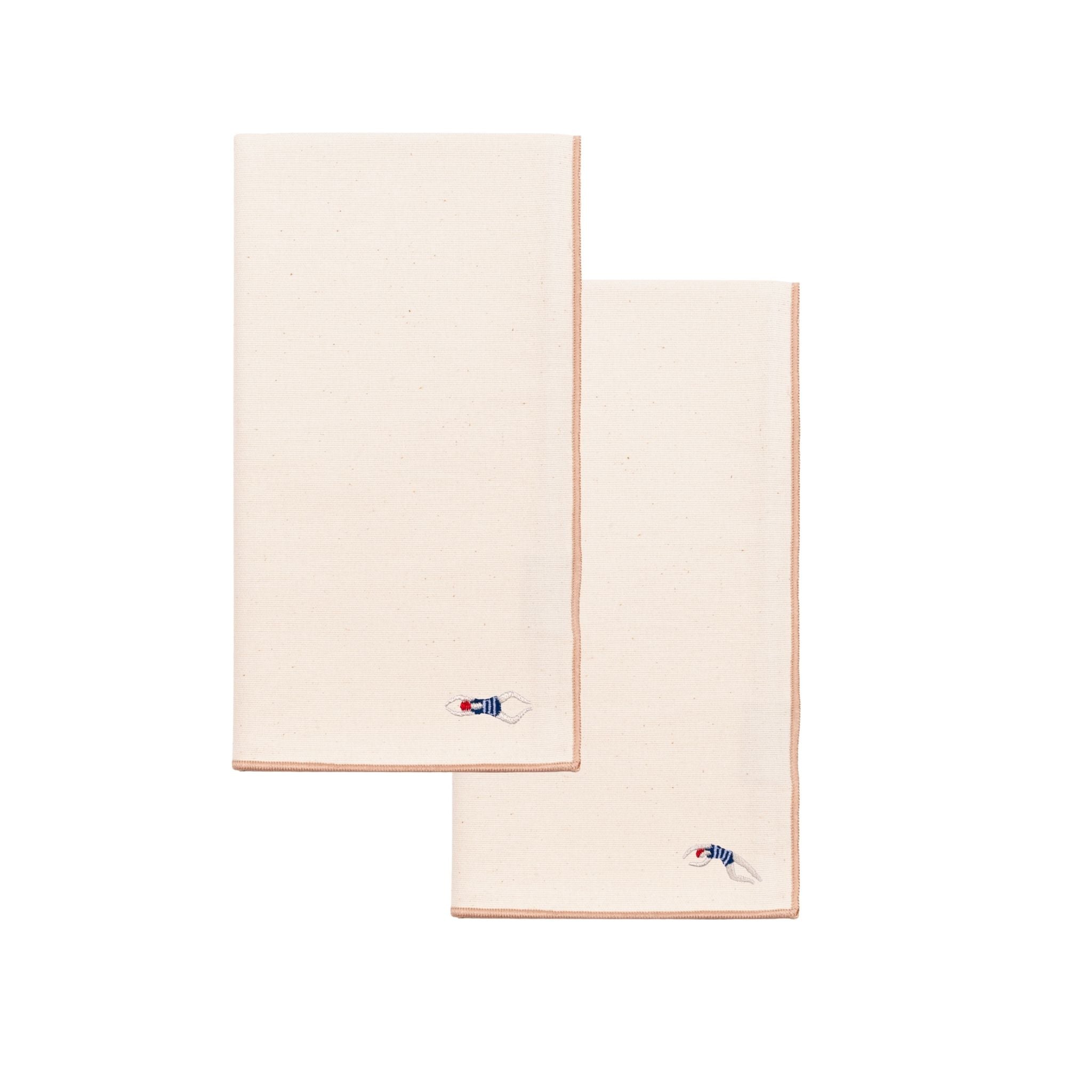 Nazaré ecru cotton table linen with embroidered retro sports motifs