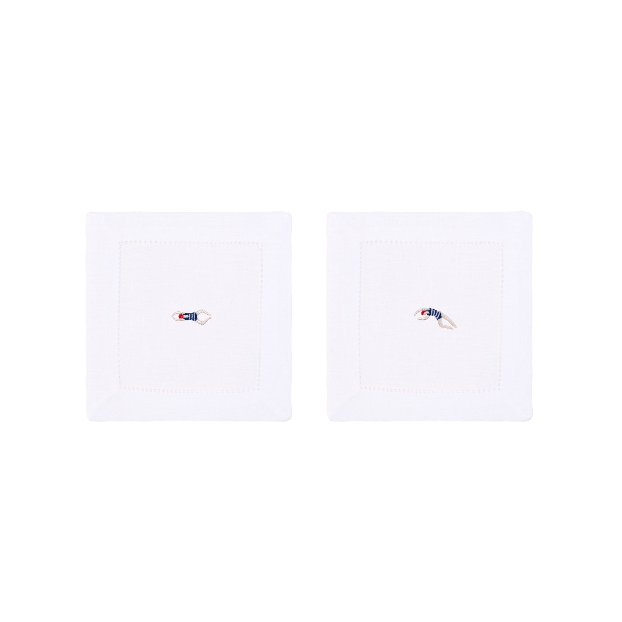 These napkins, cocktail napkins and placemats include 8 designs - a pair of swimmers, a pair of skiers, a pair of golfers and a pair of tennists - inspired by the world of sports.