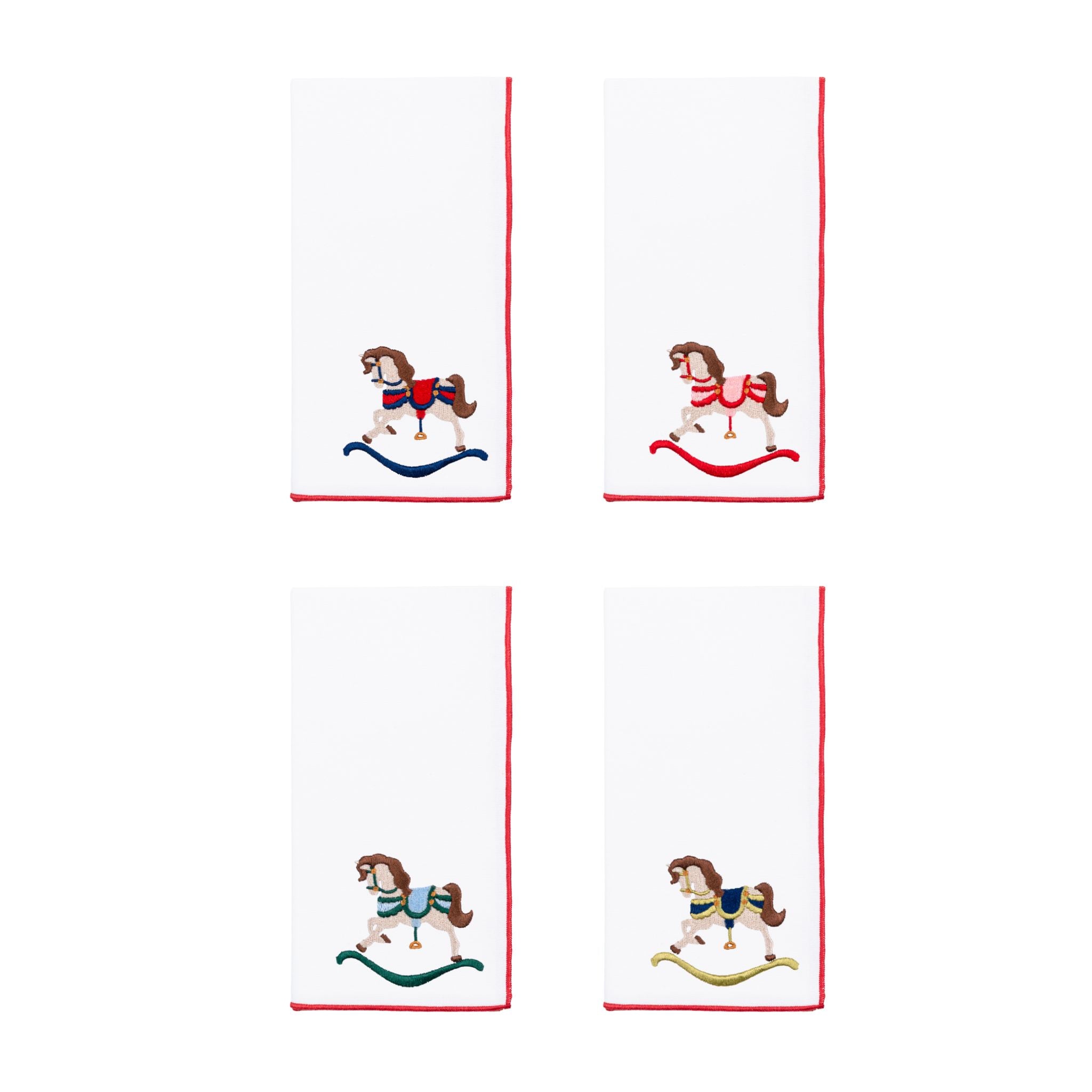 Embroidered Christmas motifs bring a touch of grace to the table, and the options are almost endless: from reindeer and snowflakes to toy soldiers in four different colors.